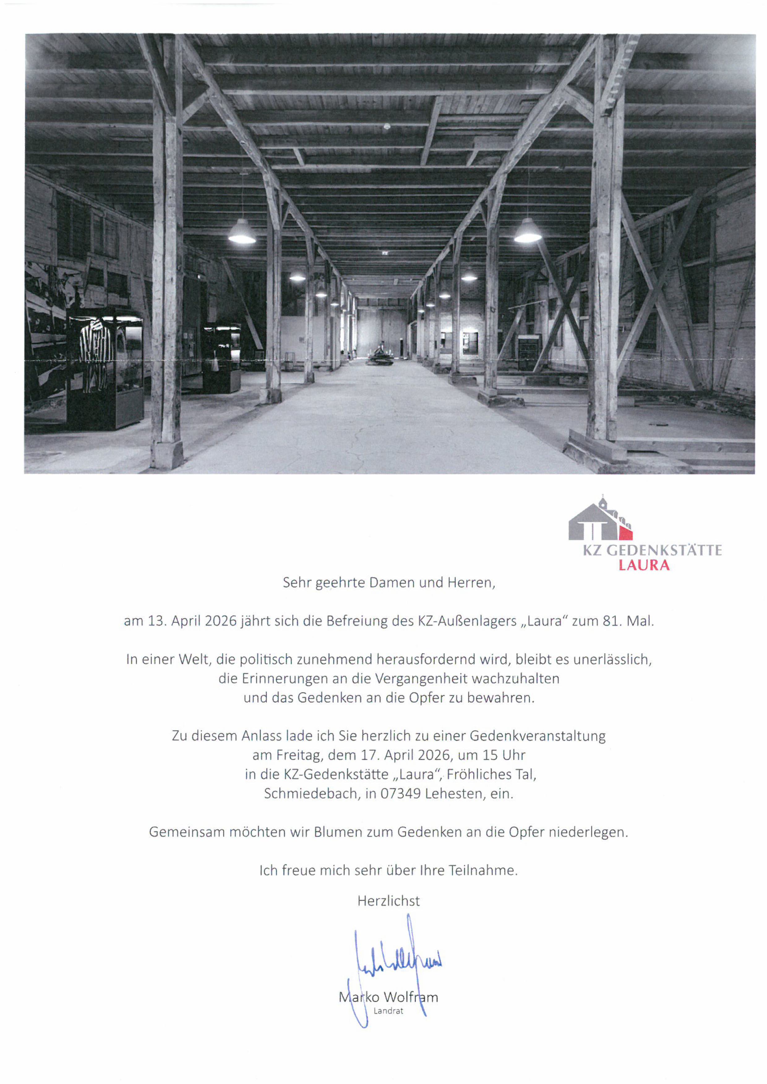 Am 13. April 2026 jährt sich die Befreiung des KZ-Außenlagers "Laura" zum 81. Mal. Aus diesem Anlass lädt der Landkreis herzlich zu einer Gedenkveranstaltung ein.